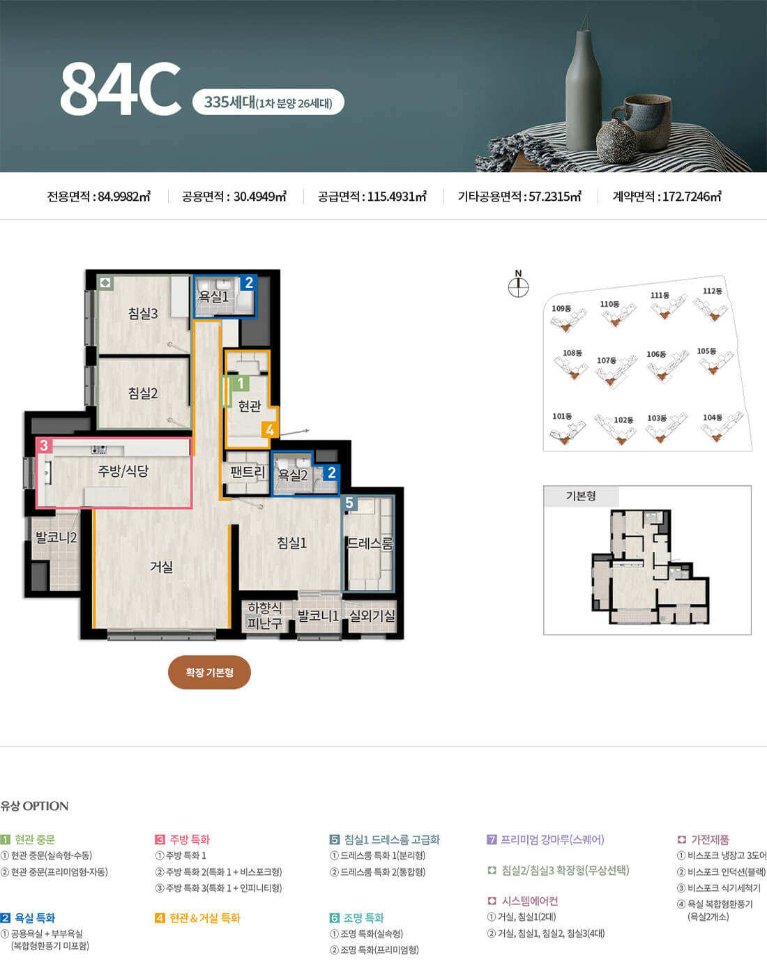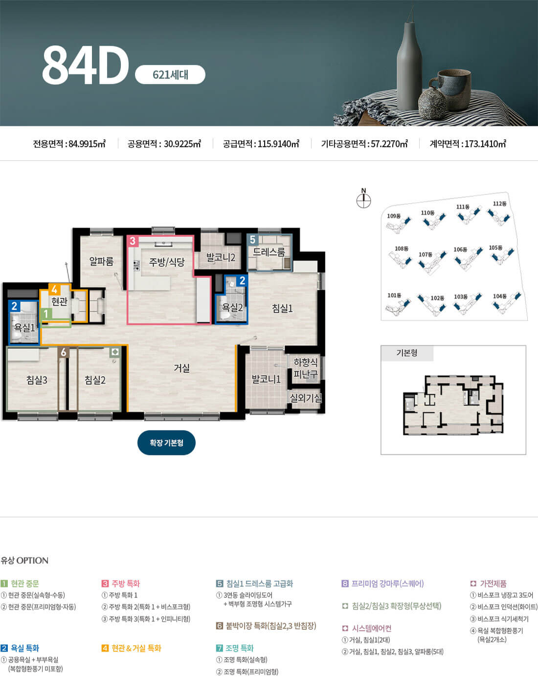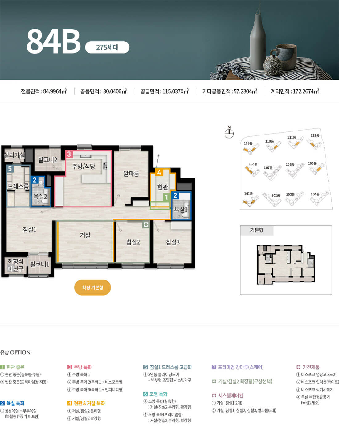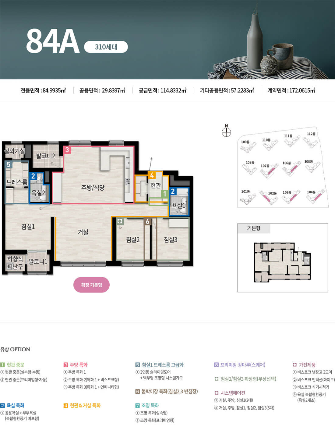 선호도 높은 84㎡ 단일 평형, A~D 타입 구성